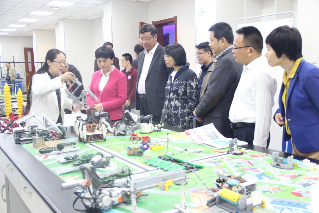 座谈结束后,李书记一行来到科学教育仪器研发中心,仔细观看了张宗权正高级实验师团队研发的光学教育仪器、秦健副教授团队研发的VEX教育机器人、白云山副教授团队研发的凝固点测定仪等仪器以及杨万民教授团队研发的超导电磁系列教学仪器的精彩演示,认真聆听了各团队负责人的详细讲解并不时提出有关问题。