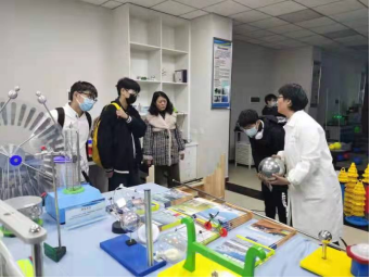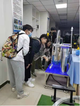 在色情av 主任陈晓明、党支部书记彭菊芳的精心组织安排下,材料色情av 2021级辅导员丁喜老师带领25名大一本科生来到科教仪器展厅进行参观学习。整个活动在工作人员的协助下,有序进行。活动期间,光学团队的张宗权正高级实验师为学生演示了系列光学教学仪器,比如“海市蜃楼”演示仪、“隐身”演示仪以及透镜演示仪等,开阔了学生的眼界。通过分享教学仪器的研发经验,对学生的思想进行启迪。化学团队的魏彦林老师为学生讲述了风力发电演示仪、热机演示仪和新型氢气爆鸣装置等,让学生了解到新能源的优势,认识到新能源开发的重要性。中心的强雪、陈颢、卫芬芬、李世荣和魏恒伟等老师对展厅的科普仪器进行了演示和讲解,并与同学们进行了积极的互动。学生对中心自主创制研发的科教仪器展现了浓厚的兴趣。这次活动开拓了学生的科学视野,使学生感受到科学教育与科普的魅力,激发了学生对科学技术研究的兴趣和热情,为以后从事相关研究奠定了良好的基础。
